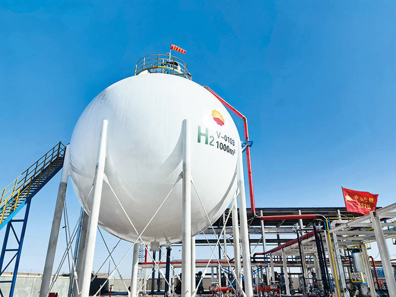 中国石油玉门油田分公司建成的可再生能源制氢示范项目储氢罐 新华社发(玉门油田供图)大规模发展仍需爬坡过坎